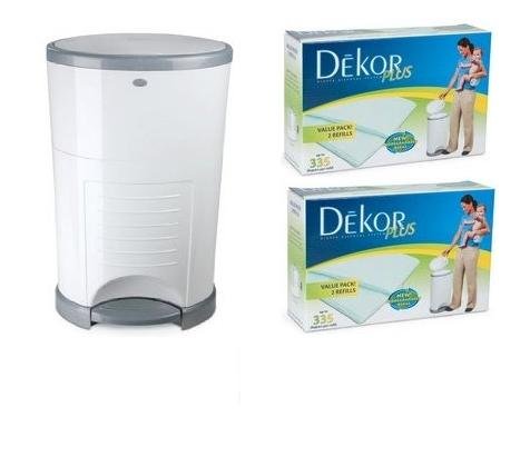 Diaper Dekor Plus Pail with 2 Boxes of Biodegradable Refills Feature
