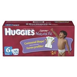 Huggies Supreme Natural Fit Diapers For your active little one, wetness should be the last thing on their mind. Huggies Supreme Natural Fit Diapers captures moisture and locks it away. The all-around stretch provides a super snug fit to keep those little legs moving comfortably all day. Step 3: 116 count, 16-28 lbs. Step 4: 100 count, 22-37 lbs. Step 5: 88 count, over 27 lbs. Step 6: 72 count, over 35 lbs. In a fun Disney Babies theme, order the Huggies Supreme Natural Fit value pack today!