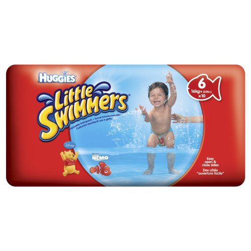 Why swell up like a beach ball when you're playing in the water? HUGGIES Little Swimmers swimpants protect in the water without swelling up like disposable diapers do. And now with Disney designs -even more fun! Available in three sizes to fit infants and toddlers: Small (16-26 lbs.), Medium (24-34 lbs.) and Large (32+ lbs.).